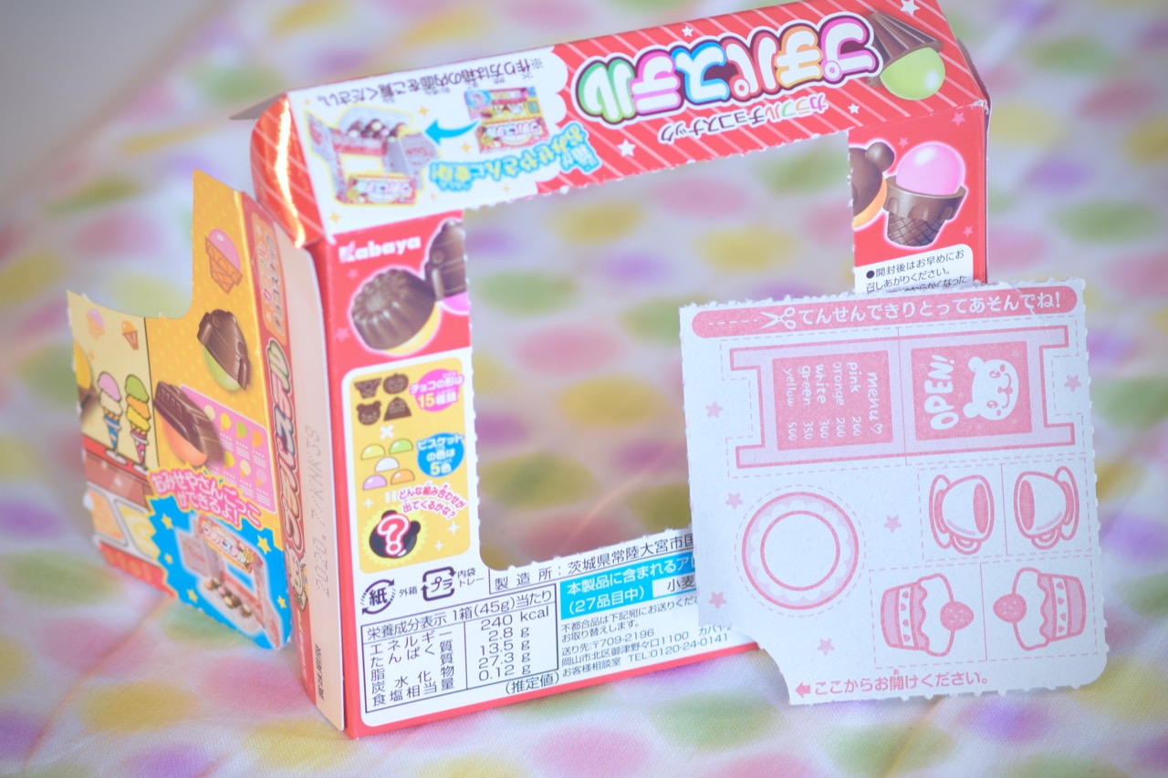 Slide the cardboard plate to create different facial expressions, with the last option opening the character's mouth such that the chocolates can come out.